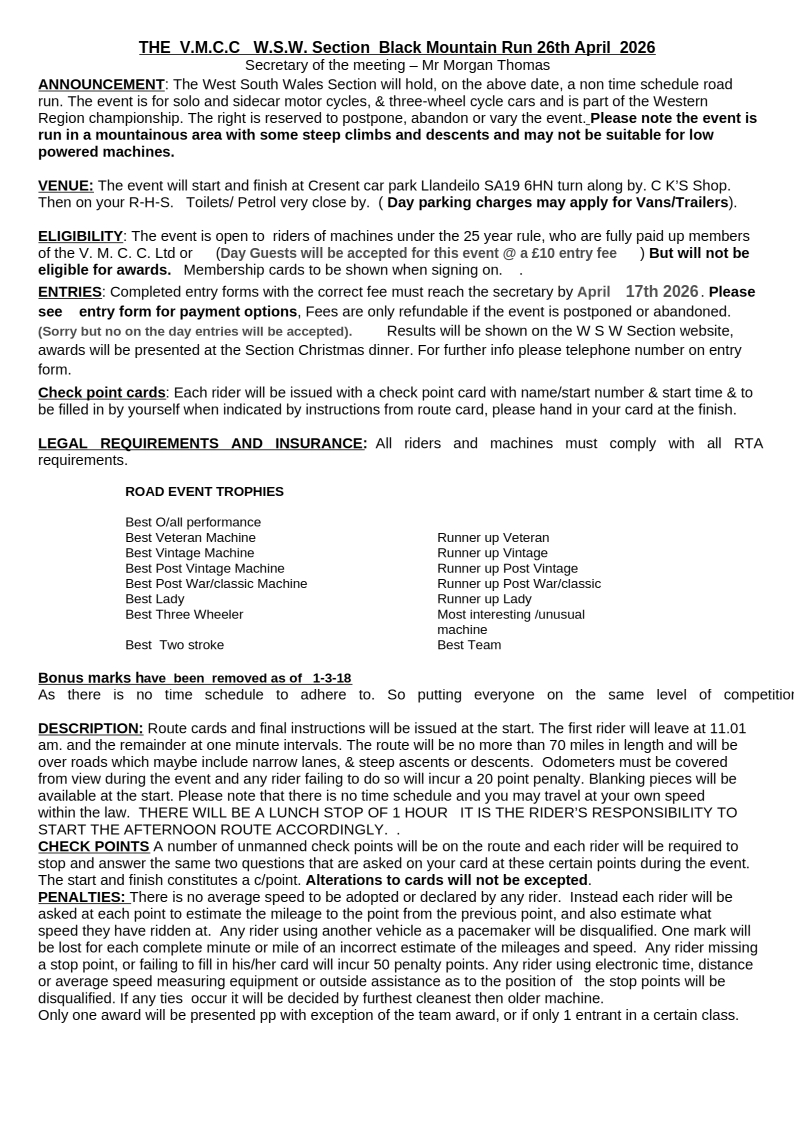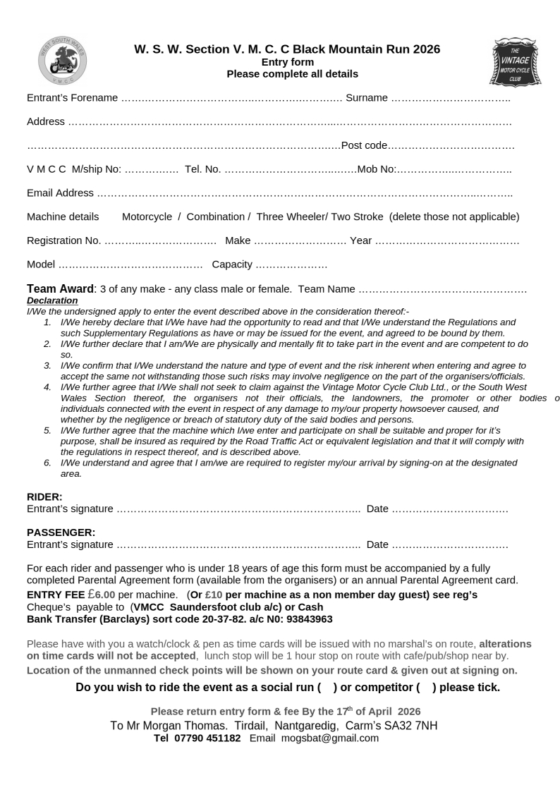 The West South Wales Section caters for all motorcycles, combinations and three wheelers with a minimum age of 25 years, regardless of make or country of origin. You do not need to own an old motorcycle to get involved, just have an interest in them. The West South Wales section is one of 83 within the Vintage Motor Cycle Club with the National club membership now being approx 15,000.